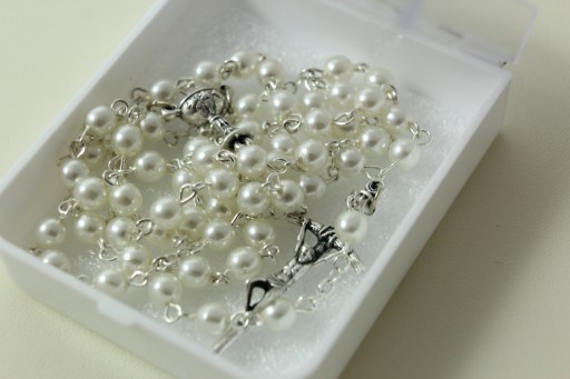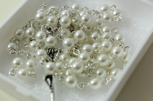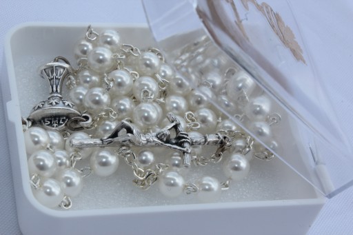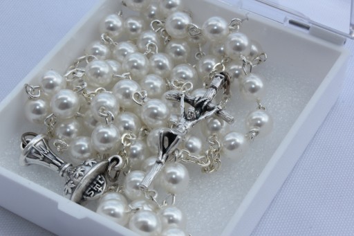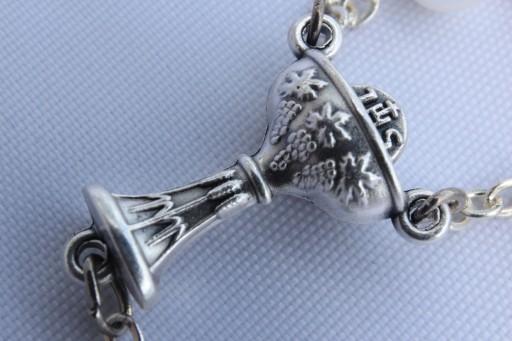 Różaniec Komunijny z Kielichem IHS WŁOSKI Perłowy