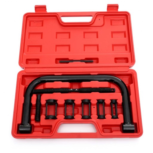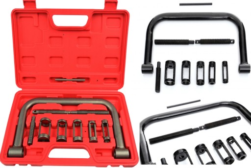 Zestaw do montażu i demontażu zaworów głowicy. Przyrząd przystosowany do pracy z silnikami diesla oraz benzynowymi. Zestaw zawiera pięć specjalnych końcówek dostosowanych do talerzyków zaworów o różnej średnicy. Urządzenie poozwala na wymianę zaworów, docieranie zaworów, wymianę sprężyn zaworowych oraz wymianę uszczelniaczy zaworowych