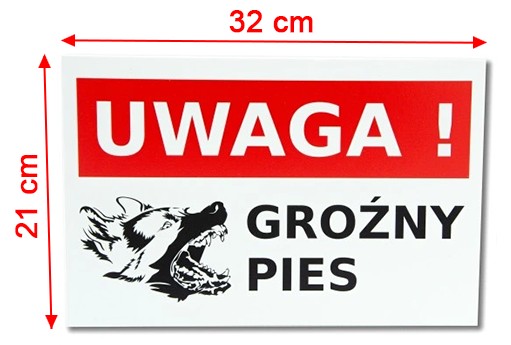⚫ TABLICZKA OSTRZEGAWCZA PCV 32 X 21 CM UWAGA ZŁY PIES