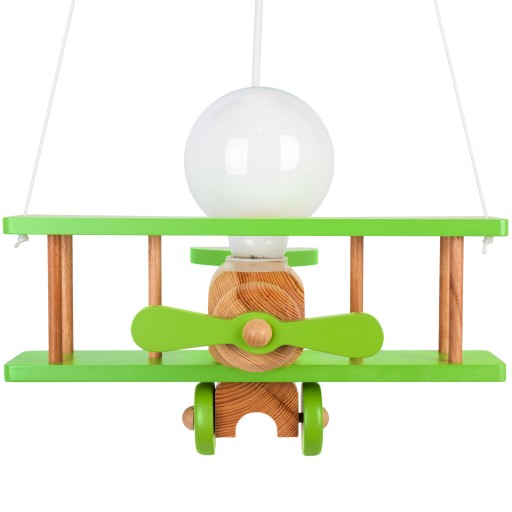 Lampa sufitowa samolot dziecięcy to propozycja bardzo ciekawego i oryginalnego oświetlenia dziecięcego. Z myślą o najmłodszych klientach stworzyliśmy wiszącą drewnianą lampę Samolot. Podczas projektowania lampy wiszącej Samolot zadbaliśmy o najmniejsze szczegóły, tak by rozwijała ucząc i ciesząc przy tym dzieci. Lampa sufitowa wisząca LED o kształcie Samolotu jest pokryta bezpiecznymi, naturalnymi wodnymi farbami. Wykonana została z drewna sosnowego, co czyni ją mocnym i trwałym oświetleniem na lata.