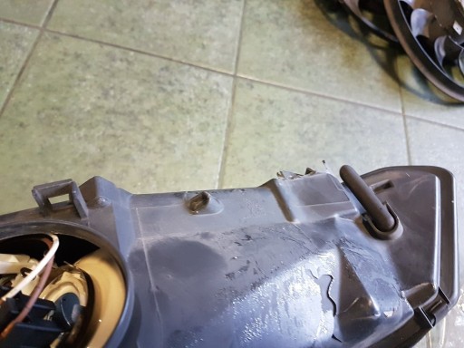Uszkodzony dolny zaczep, lekko pęknięta puszka.