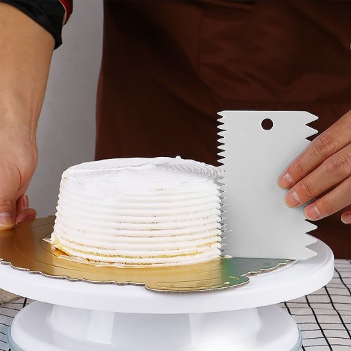 Zestaw szpatułek i pacek do wygładzania kremu maślanego, śmietanowego, lukru oraz masy cukrowej.
