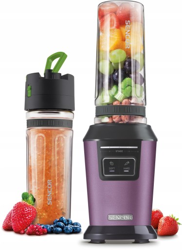 Sencor SBL 7173VT to urządzenie, które ułatwi Ci przyrządzanie świeżych napojów bogatych w witaminy, skomponowanych z różnych składników. Mikser do smoothie doskonale nadaje się również do przygotowywania napojów warzywnych lub owocowych, koktajli mlecznych, zup, sosów salsowych lub żywności dla niemowląt. Wydajną pracę gwarantuje silnik o mocy 800 W, wysokiej jakości noże wykonane ze stali nierdzewnej. Opakowanie zawiera dwie butelki sportowe o pojemności 0,6 litra bez BPA wykonane z Tritanu. Butelki są łatwe do zamknięcia dzięki otworowi do picia w pokrywie.