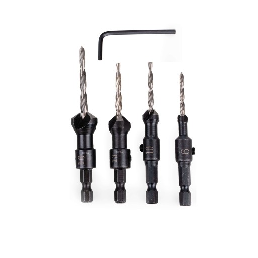 Wiertła do fazowania w drewnie posiada możliwość regulowania głębokości odwiertu poprzez poluzowanie śruby, ustawienie wiertła/głębokości i dokręcenie z powrotem śruby.