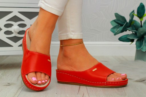HIT klapki damskie na delikatnej koturnie w kolorze czerwonym, lekkie i wygodne.