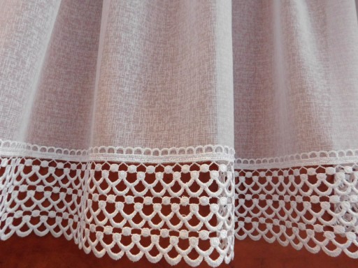 Przedmiotem sprzedaży jest firana- zazdrostka z woalu francuskiego tzw. sable wykończona 5cm gipiurą - nowość!