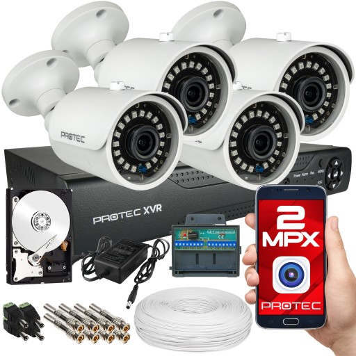 KOMPLETNY ZESTAW 4 KAMER 2MPX (FULLHD) OBEJMUJE:
