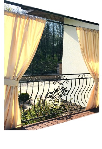 Wyjaśnienie na czym polega wodoodporność tkaniny ; Jeżeli nasza zasłona zostanie zamontowana w altanie pod dachem to woda opadowa będzie spływała po zasłonie powodując minimalne zawilgotnienia tkaniny , natomiast jeżeli będzie zamontowana w pergoli bez dachu to podczas deszczu częściowo może wchłonąć wilgoć ale nie stanie się ciężką ociekającą zasłoną tylko będzie lekko wilgotna.