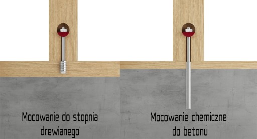 - Zestaw kotw do mocowania słupów do stopni drewnianych o grubości minimum 30mm.