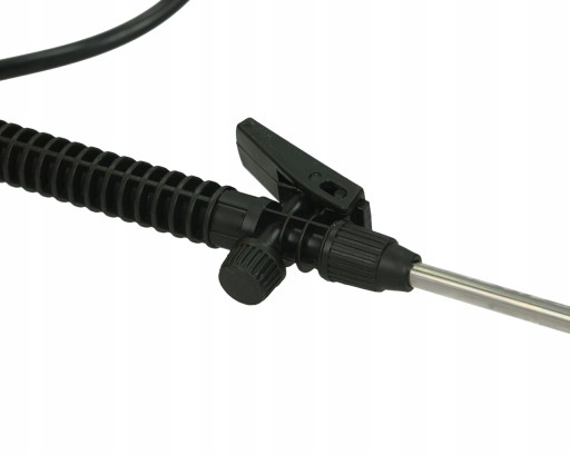 - dźwignia spustu z blokadą i regulacją - za pomocą pokrętła na dźwigni można regulować moc oprysku. Spust można zablokować, żeby przepływ był cały czas otwarty