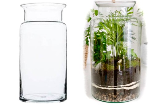 Słój szklany to modne, stylowe i wielopłaszczyznowe naczynie ze szkła bezbarwnego, wykonane metodą ręczną w polskiej hucie szkła. To jeden z najbardziej popularnych wzorów, w którym można zaprojektować żywy ekosystem. Naczynie na terrarium doskonale sprawdzają się w kontrolowaniu wilgotności dla różnych rodzajów miniaturowych roślin. Aranżacje z sukulentów, mchu i małych paproci wykonane w takim pojemniku szklanym są stylowe, estetyczne i pozwalają na kontakt z naturą. Stanowi ono doskonałą bazę do lasów w słoiku. Las w słoiku to ogród w szkle, który długo będzie cieszył nasze oczy. Słój dekoracyjny idealnie sprawdza się jako wazon. Jego prosta forma przyciąga wzrok nie tylko do ułożonej w nim kompozycji z kwiatów, ale także do jego oryginalnego wyglądu, wyróżniającego się na tle zwykłych wazonów.