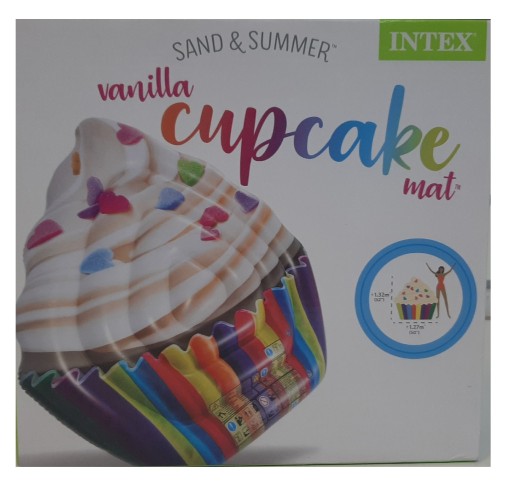 Dmuchany materac plażowy w postaci smacznej muffinki o wymiarach 132 x 127 cm przeznaczony jest do pływania dla dzieci oraz osób dorosłych.