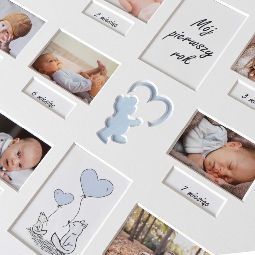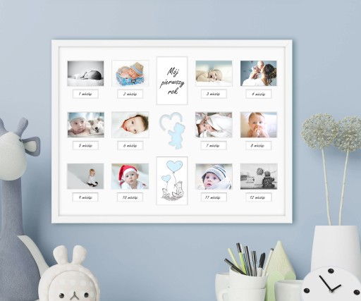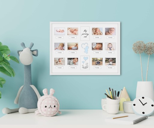 Pojawienie się wyczekiwanego dziecka jest dla rodziców powodem do ogromnej radości. W pierwszym roku niemowlak zmienia się praktycznie każdego dnia. Warto upamiętnić tę chwilę umieszczając jego zdjęcia w nowoczesnej i stylowej ramce. Przygotowana przez nas multirama daje możliwość oprawienia w niej zdjęć z pierwszych 12 miesięcy życia dziecka.