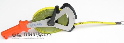 Taśma ruletka geodezyjna niemieckiej firmy Richter stalowa lakierowana żółta/ biała 414 GSR/30m. Rama wykonana z anodyzowanego (utlenionego) lekkiego stopu aluminium, wyjątkowo odpornego na uderzenia. Taśma stalowa, niełamliwa .