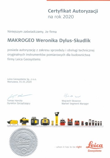 Tylko autoryzowani sprzedawcy Leica Geosystems dają Państwu gwarancję, że zakupiony sprzęt spełni Państwa oczekiwania co do jakości, oryginalności sprzętu oraz autoryzacji serwisu gwarancyjnego oraz pogwarancyjnego