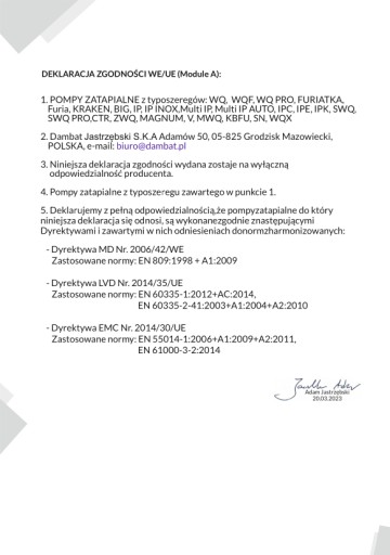 O wysokiej jakości produktu oraz jego niezawodności świadczy deklaracja zgodności.