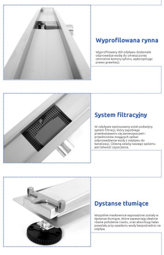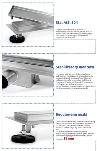 - W komplecie: Nóżki, syfon, mankiet Dry-Fix, koszyk, instrukcja obsługi oraz hak do zmiany maskownicy