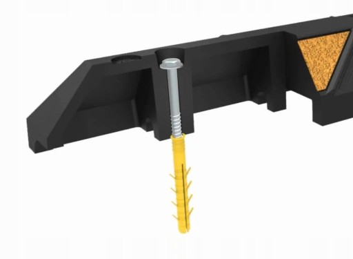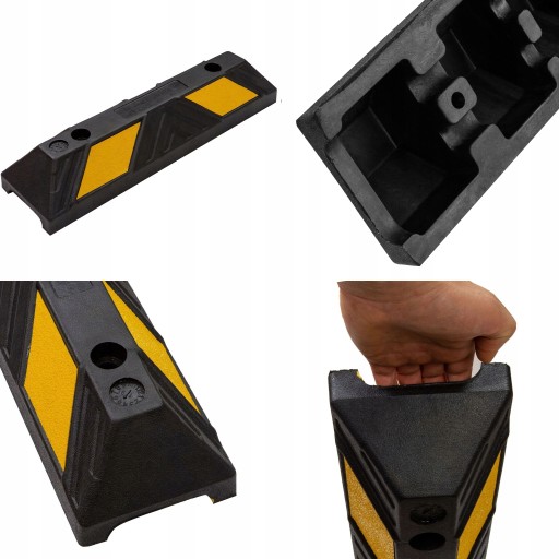 Otwory na śruby umożliwiają przymocowanie ograniczników do podłoża dzięki czemu nie przesuwają się po najechaniu na nie pojazdów. (w zestawie brak śrub montażowych, należy zakupić je samodzielnie)