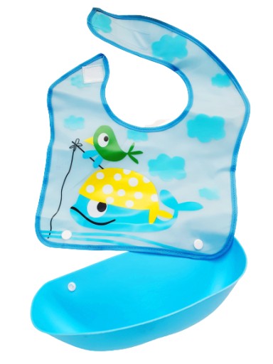 Śliniak posiada sztywną kieszonkę na resztki pokarmu co ułatwia zachowanie czystości podczas posiłków.