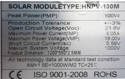 Standardowe warunki testowe promieniowanie 1000w/m2, temperatura 25°C, AM=1,5