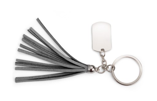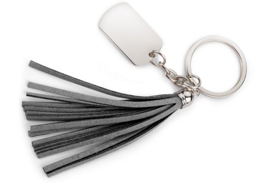 PIĘKNY METALOWY BRELOK Z ELEMENTAMI IMITUJĄCYMI ZAMSZ