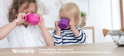 Doidy Cup to niezwykły, "krzywy" kubeczek stworzony z myślą o potrzebach i umiejętnościach najmłodszych dzieci. Jest lekki i poręczny, a picie z niego wymaga tych samych, naturalnych ruchów szczęki co ssanie piersi matki. Kubeczek Doidy Cup to idealne rozwiązanie w momencie, gdy rodzice postanowią nauczyć niemowlę pić z kubeczka - zarówno dziecko dotychczas ssące pierś, jak i te karmione z butelki. Sprawdza się przy pojeniu niemowląt (od 3 miesiąca), małych dzieci, starszaków i dorosłych. Można w nim podawać wodę, mleko, sok, herbatkę, a w porze obiadowej - zupę krem.