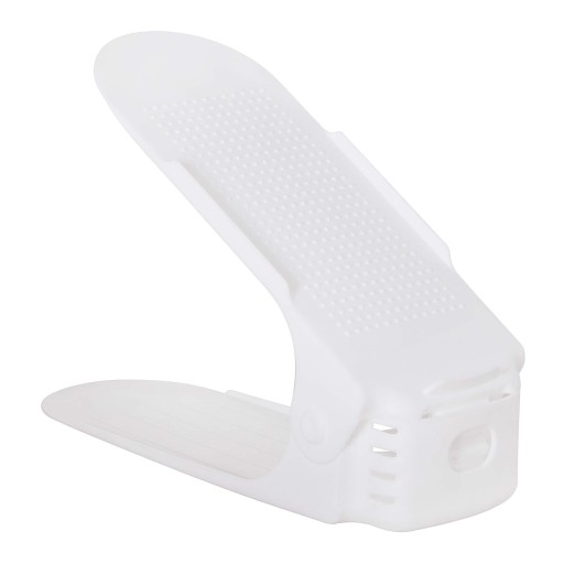 Uchwyt na buty został zaprojektowany tak, aby każdy rodzaj obuwia mógł zostać na nim ułożony. Trzypoziomowa regulacja wysokości górnej cześci pozwoli na uzyskanie wysokości: ok 10 cm, ok 14 cm oraz ok 18 cm. Dzięki temu można ułożyć na organizerze zarówno japonki, buty sportowe jak i obcasy.