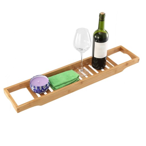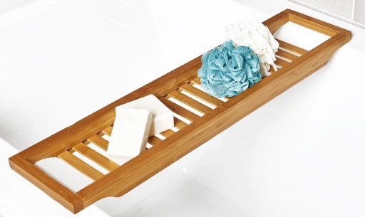 Praktyczna bambusowa półka na wannę do przechowywanie akcesoriów kąpielowych i nie tylko. Wykonana z naturalnego bambusa nie tylko wygląda elegancko ale też jest niezwykle wygodna w użyciu dzięki wyjątkowej odporności na wilgoć. Dzięki półce wszystkie niezbędne przybory do kąpieli będą zawsze pod ręką.