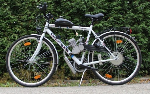 SILNIK 2T KOMPLETNY DO ROWERU Pojemność 80 ccmMoc 2 kW/6000obr/min(20% podwyższony moment obrotowy względem wersji 49 ccm)Waga zestawy 6,5 kgw zestawie:gaźnikelektroniczny zapłonwydech,przekładnia łańcuchowa manetki z linkamizbiornik paliwazestaw montażowyZalecana mieszanka beznzyny z olejem 2T w prporcjii 20:1 ( w procesie docierania 16:1) j