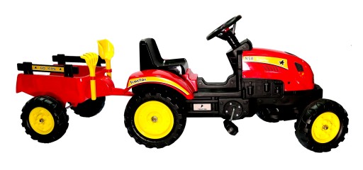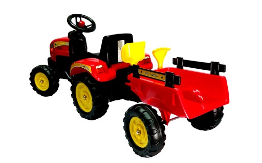 Traktor na pedały z przyczepą i akcesoriami to idealny prezent dla dziecka.