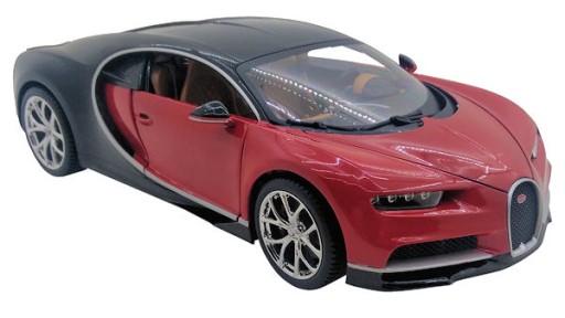 Idealnie odwzorowany pojazd metalowy marki Bugatti Chiron firmy Bburago. Model dopracowany w każdym szczególe, wnętrze wyposażone jest we wszystkie elementy prawdziwego pojazdu (kierownica, deska rozdzielcza, siedzenia). Samochód wykonany jest z metalu (nadwozie) oraz z elementów plastikowych (podwozie i wnętrze).
