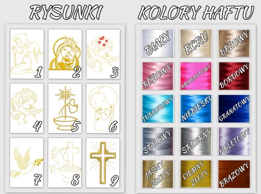 3) kolor haftu (istnieje możliwość wykonania szatki w dwóch kolorach, w takim przypadku prosimy o informację w jakim kolorze wykonać napis i w jakim kolorze rysunek)