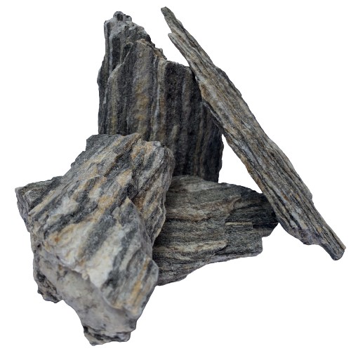 Wyselekcjonowane, płaskie kawałki kory kamiennej z których bez problemów można ułożyć zamierzony kształt.