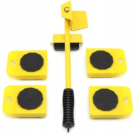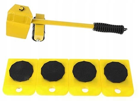 ✅ Plastikowe podstawki z rolkami przeznaczone do transportu i ustawiania mebli lub innych ładunków o ciężarze do 150 kg. Stalowa dźwignia służy do uniesienia ładunku przed wsunięciem podstawek z rolkami .