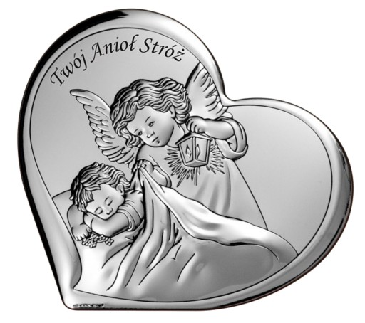 Obrazek SREBRNY Anioł Stróż nad dzieciątkiem 16x14cm