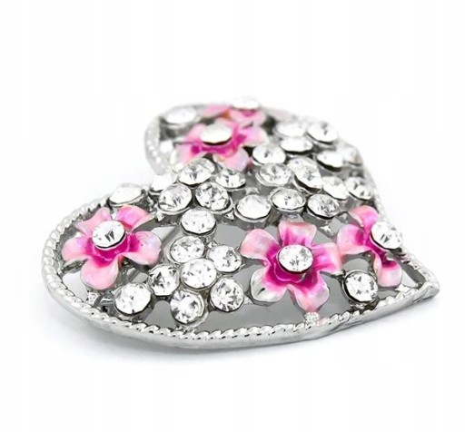 BROSZKA SERCE Z CYRKONIAMI I KWIATUSZKAMI