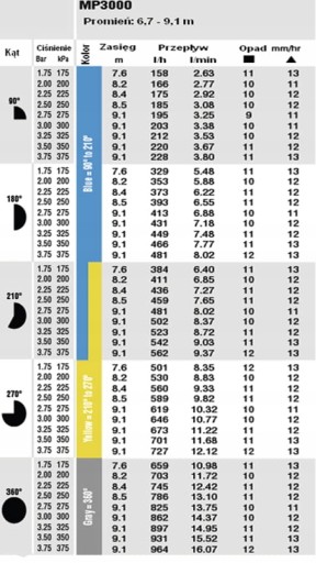 - DYSZA MP ROTATOR MP3000 90 z regulacją zasięgu 6,7m - 9,1m i kąta w zakresie 90-210º