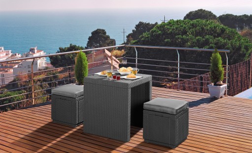 Pufa świetnie komponuje się z meblami ogrodowymi z naszej oferty. Z serią Corfu lub Orlando może stworzyć funkcjonalny zestaw.