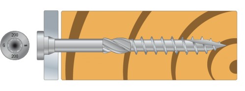 Specjalne wkręty konstrukcyjne do drewna i złączy ciesielskich z częściowym gwintem oraz płaską główka i gniazdem gwiazdkowym TX.