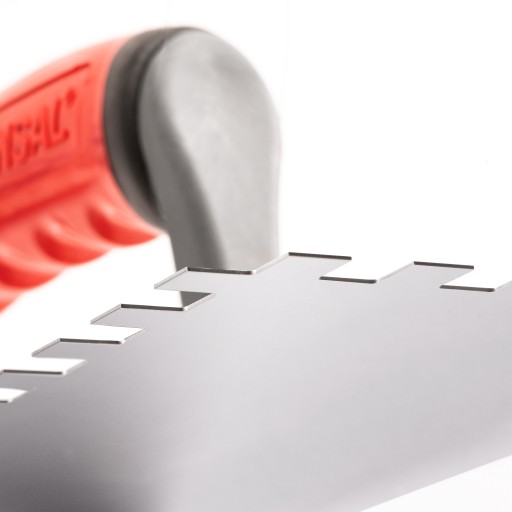 Paca przeznaczona do rozprowadzania klejów samorozpływnych, grubowarstwowych i odkształcalnych na płytkach oraz wykonania w kleju bruzd o oczekiwanej głębokości. Dzięki temu uzyskuje się właściwe równomierne rozprowadzenie kleju w celu trwałego przyczepienie płytki do podłoża na zaplanowanej wysokości.