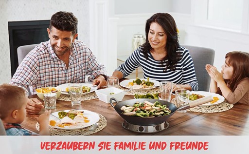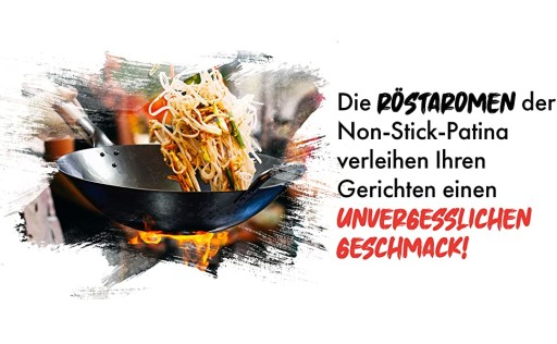 - Wyjątkowo gruba stal (1,85 mm) gwarantuje i zawsze płaska powierzchnia nośna kuchenki (przy płaskim wok).