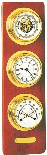 Trzy przyrządy Barigo wbudowane w mahoniową skrzynkę.
