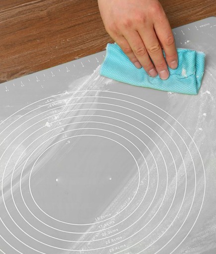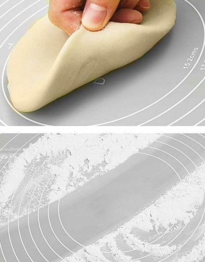 SILIKONOWA – mata kuchenna wykonana jest z wysokiej jakości silikonu, co oznacza, że łatwo utrzymać ją w czystości, ponadto jest wytrzymała na rozdarcia i wysoką temperaturę. Taka stolnica silikonowa dobrze przylega do stołu/blatu i nie przesuwa się po nim podczas wyrabiania ciasta.