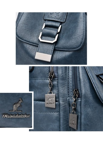 Duży stylowy plecak z pięknym metalowym logiem kangura, o modnym fasonie, praktycznym wnętrzu i doskonałej jakości wykonania. Delikatnie nabłyszczona ekoskóra, z której model został wykonany, w połączeniu z pięknymi kolorami, zachwyca swoją strukturą do złudzenia przypominającą skórę naturalną. Okucia wykonane w kolorze grafitowym dodają modelowi elegancji i dobrego smaku.