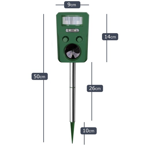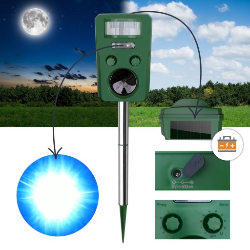 Przyjazny dla środowiska, emitowane ultradźwięki i światło flesz nie zabijają i nie szkodzą zwierzęciu. Dźwięki i silne światło podrażniają zwierzęta co powoduje że unikają obszaru chronionego przez odstraszacz.