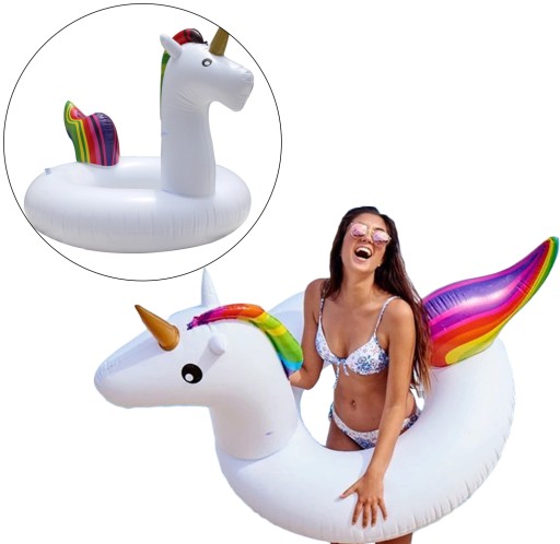 Absolutna nowość sezonu! Wyjątkowy, unikalny, oryginalny materac dmuchany w kształcie JEDNOROŻCA! Genialna zabawa na plaży, dla dzieci i dorosłych. To najnowszy HIT tego lata. Nikt nie przejdzie obojętnie widząc takie cudo.