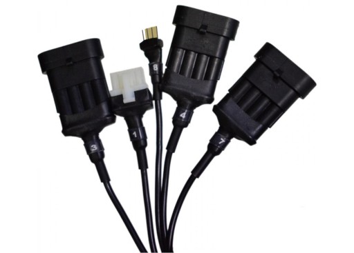 Interfejs zawiera wszystkie poniższe złącza i obsługuje wszystkie instalacje wymienione na poniższej liście. Wszystkie złącza na wiązce czytelnie oznaczone numerami aby bez problemu dopasować odpowiednie złącze do instalacji.
