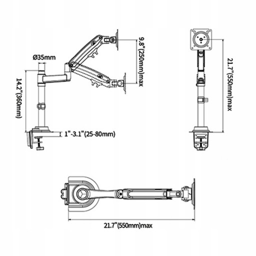 - regulacja sprężyny gazowej do wagi monitora w zakresie od 2 do 12 kg
