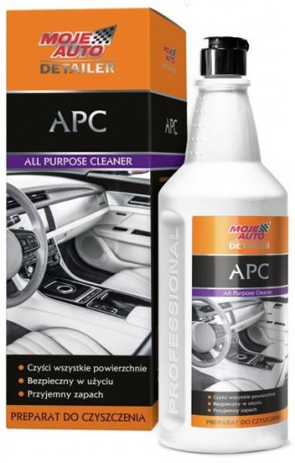 Moje Auto Detailer APC All Purpose Cleaner to uniwersalny preparat w formie koncentratu stworzony z myślą o perfekcyjnym czyszczeniu każdej zmywalnej części samochodu. Preparat posiada znakomite właściwości zwilżające, dzięki czemu ma silne działanie odtłuszczające i usuwające brud. Produkt jest bezpieczny dla czyszczonych powierzchni, zapewniając im naturalny kolor, pozostawiając świeży zapach. W zależności od czyszczonej powierzchni i zabrudzeń można go rozcieńczyć w różnych proporcjach.