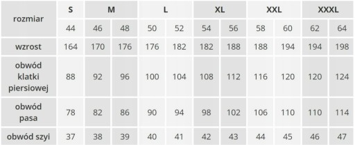 (przedstawione tabela rozmiarów zawiera przybliżone wymiary sylwetki)
